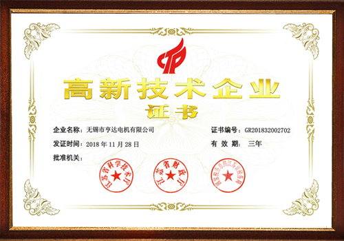 自成立以來,亨達電機一直保持高速的增長,對電動機產品進行持續的開發和創新,同時不斷引進高新技術人才,加大科技研發力度。此次能順利通過國家高新技術企業評定,充分展示了公司在自主知識產權、技術創新組織管理、科技成果轉化能力、成長性指標等環節的過硬實力。