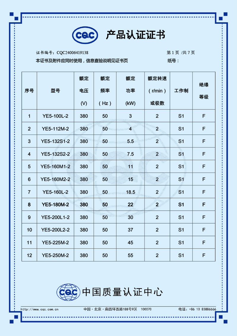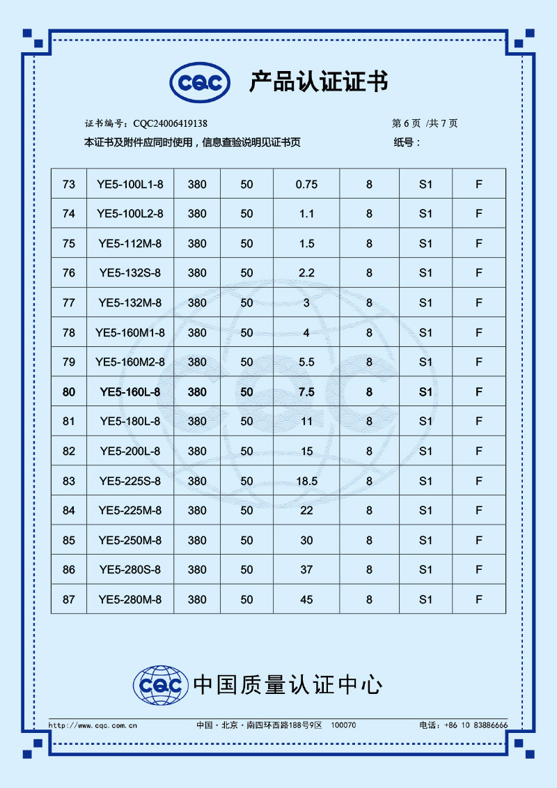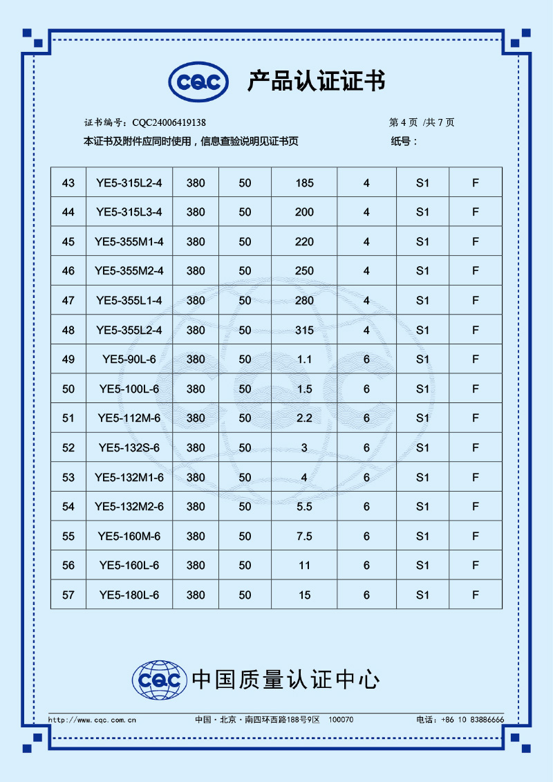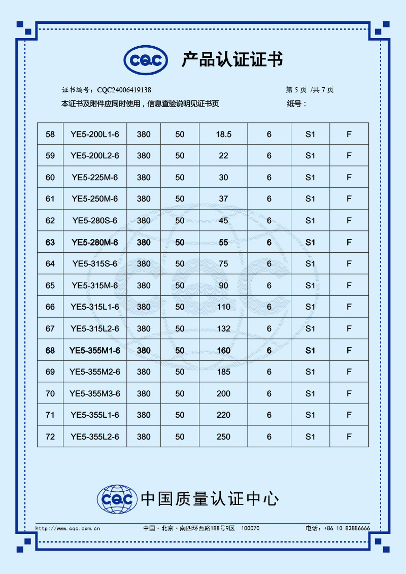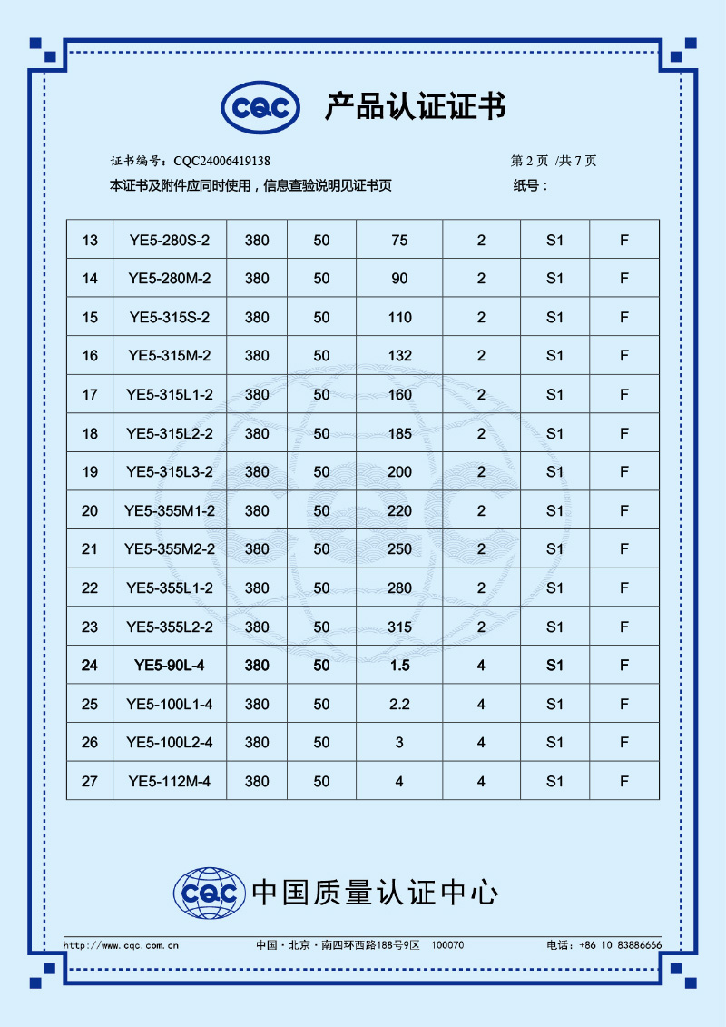 CQC產品認證證書-YE5
