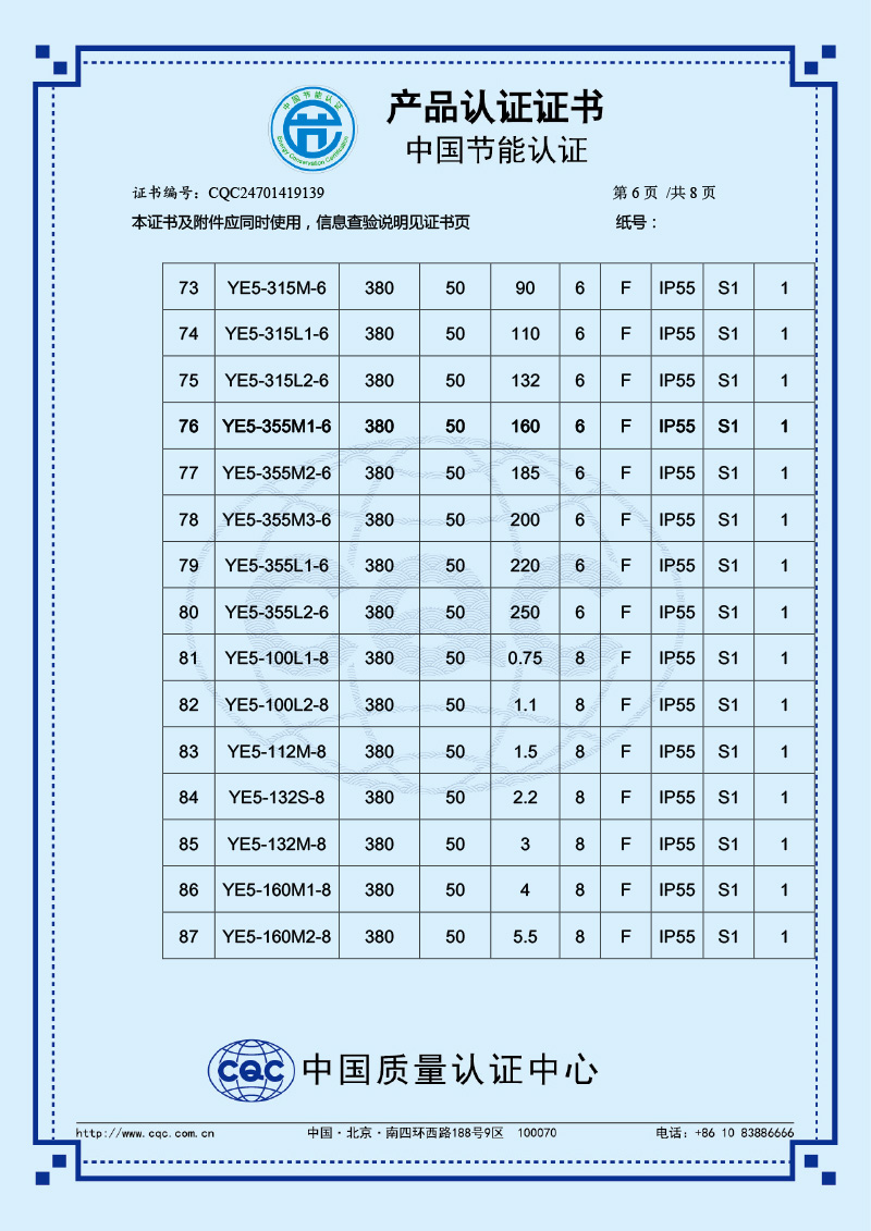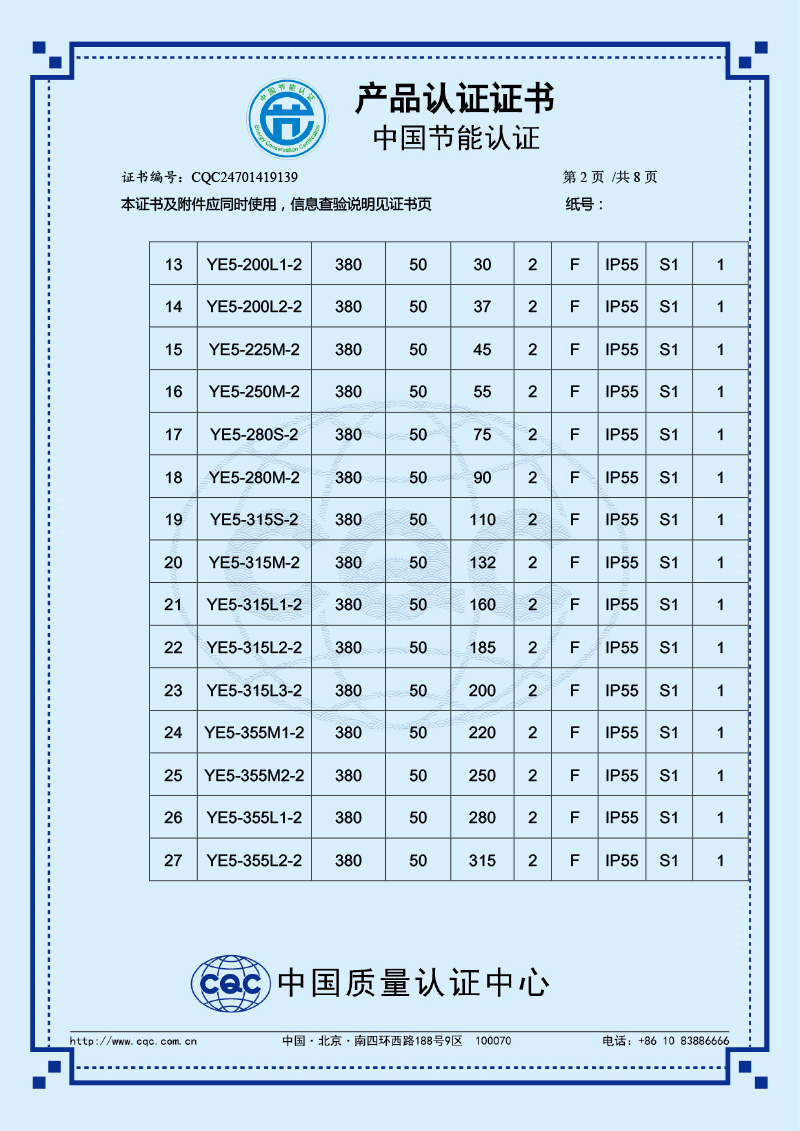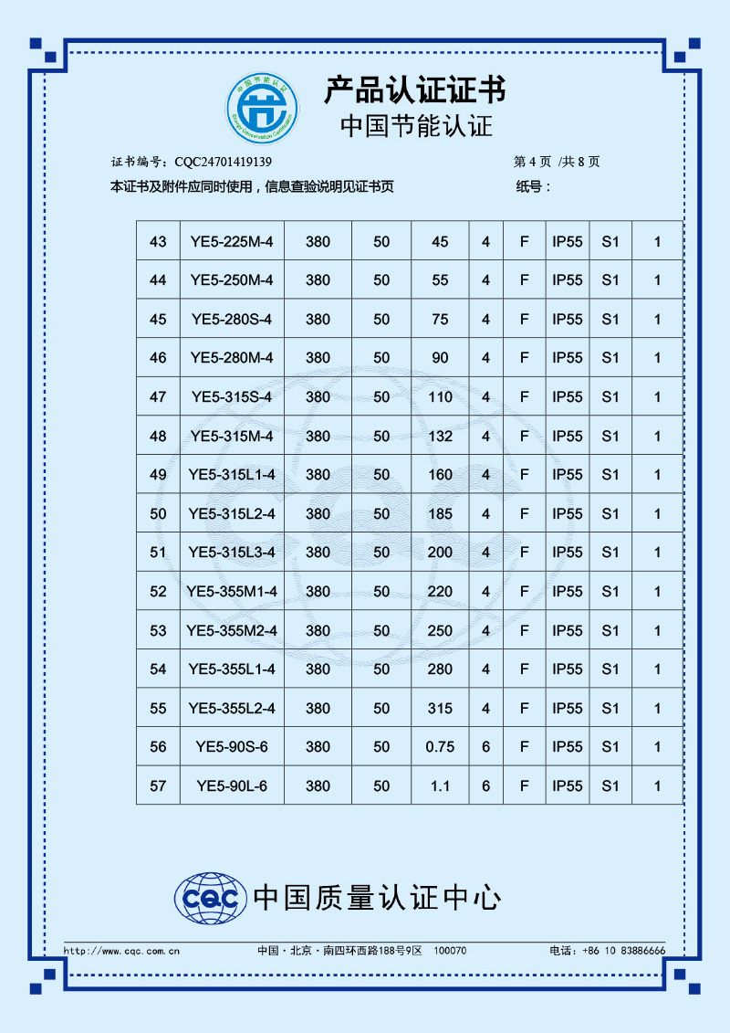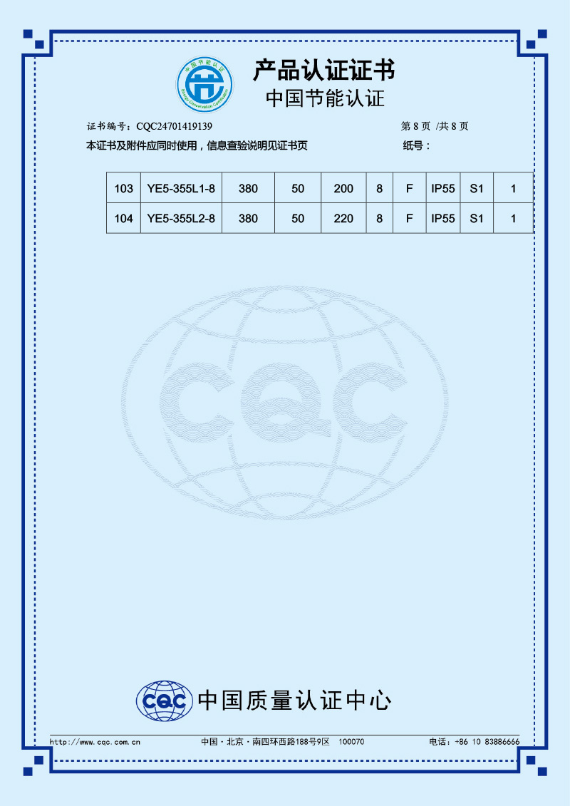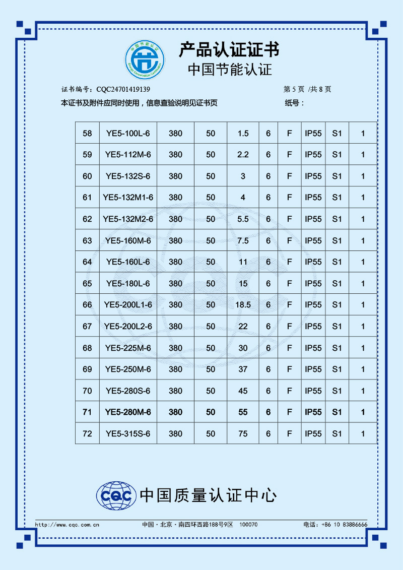 中國節能產品認證證書-YE5